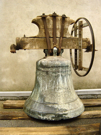 La grosse cloche de 1200 kilos Je m’appelle Claude Louise Sébastienne. J’ai été bénite par Mr Jean François Grand. Curé de Merey. J’ai eu pour parrain, Mr Claude Louis Nicolin de Merey, curé à Mercey le Grand, et pour marraine, Mme jeanne Louise Bugnon, épouse de Jean Claude Ragot, maire de Merey. Faite à Morteau Par G.C et P.A. BOURNEZ Père et fils. 1842 |