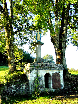 Vierge noir de Merey Sous Montrond Le curé BOUVERET dont le frère cadet fut véritablement l’inspirateur des pèlerinages annuels des Franc-Comtois à la vierge noire de l’abbaye suisse de Notre Dame des Ermites à Einsiedeln, imita la dévotion mariale de son puîné en faisant ériger, à l’entrée du village, côté Villers, la statue de la Vierge en l’année du choléra en 1854. |